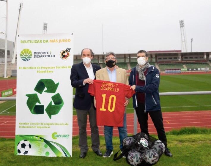 La Real Federación Española de Fútbol (RFEF) y la Asociación Deporte y Desarrollo han llegado a un acuerdo que permitirá realizar proyectos sociales en el fútbol base financiados a través del reciclaje del césped artificial. El presidente de la Comisión de RSC de la Federación, Jacinto Alonso, y el presidente de la Asociación, Miguel Felipe Rodríguez Álvarez han ratificado hoy, en la Ciudad de Fútbol de Las Rozas, el convenio que pondrá en marcha este proyecto.